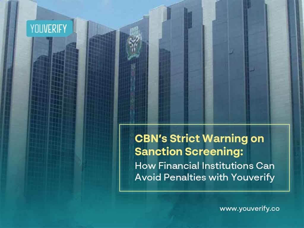 For commercial banks, fintechs, payment service banks (PSBs), and microfinance institutions (MFIs), this directive means one thing: Your sanction screening systems must be airtight, real-time, and audit-ready. Here’s what you need to know on the CBN update on sanctions screening—and how Youverify ensures you stay compliant effortlessly.